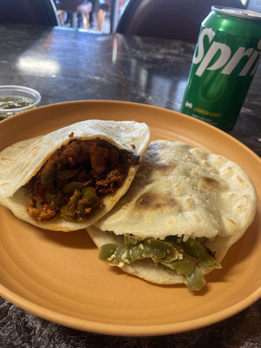 The gordita de chicharrón verde is delicious. Rajas verde y rojo are tasty. Nopales con huevo on point. They do have the durango technic on making them and good flavor! Keep up the good work guys! Arriba 34000!
